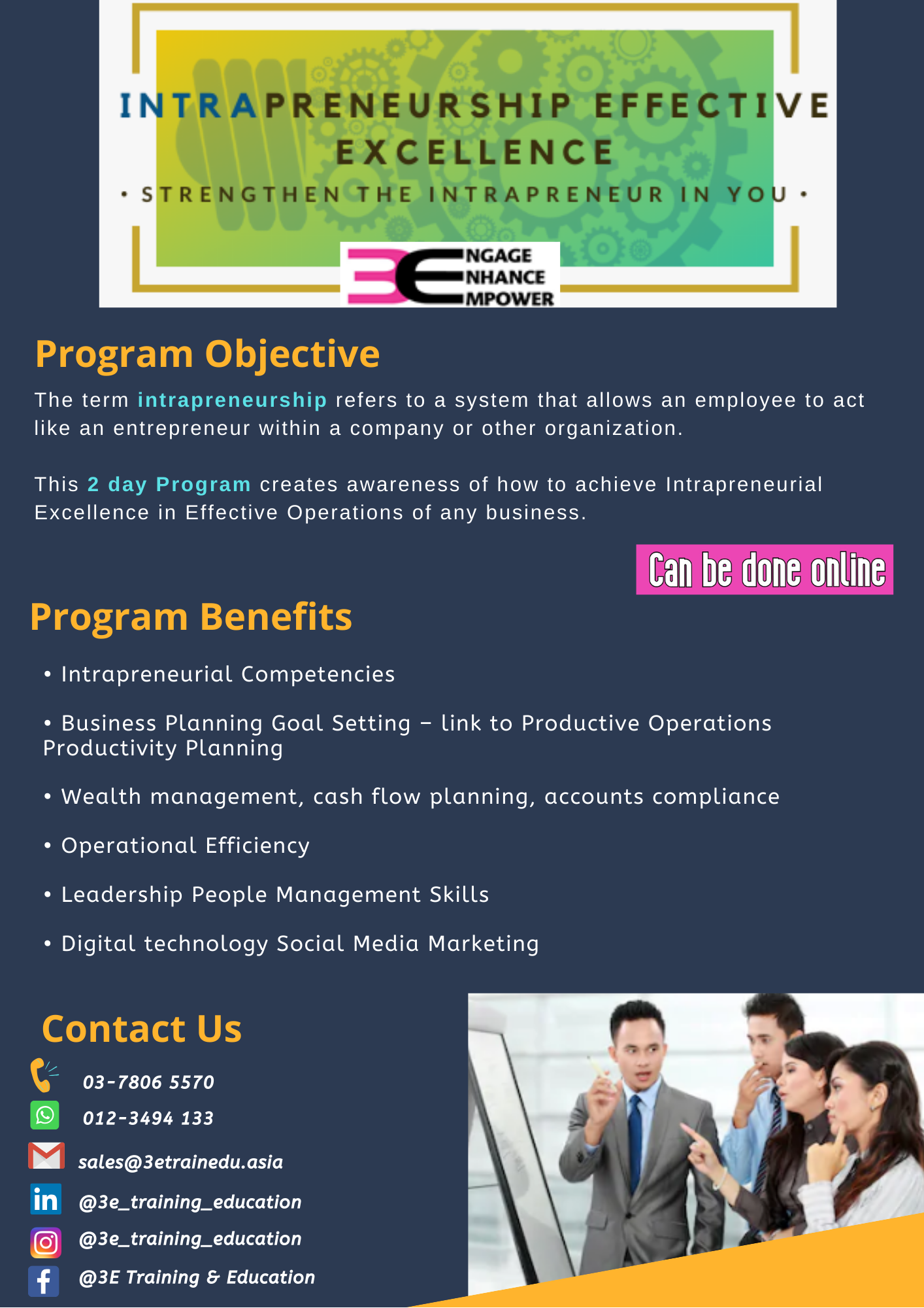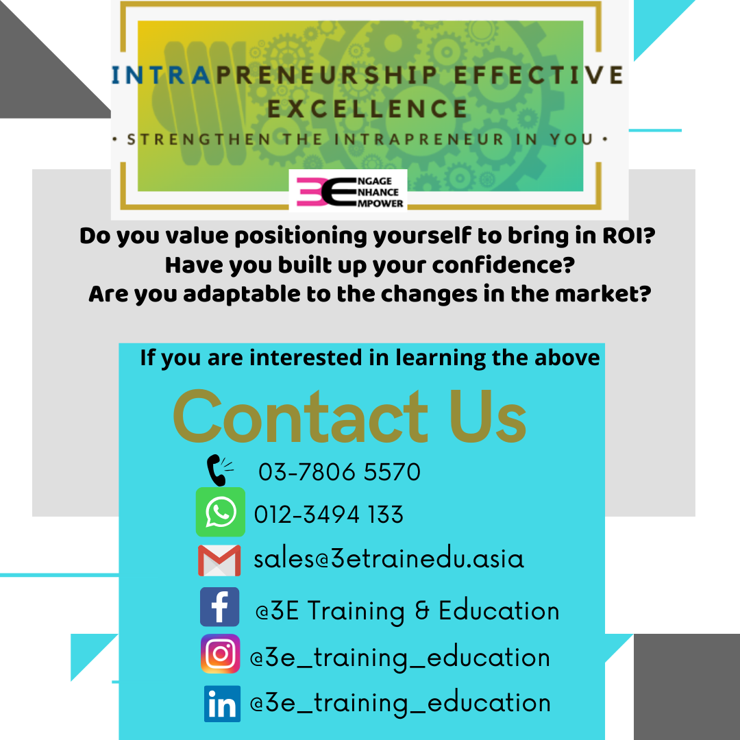 We are an experienced and established company with contacts built over the years, who will help you generate the outcome you want in order to become a successful Intrapreneur.