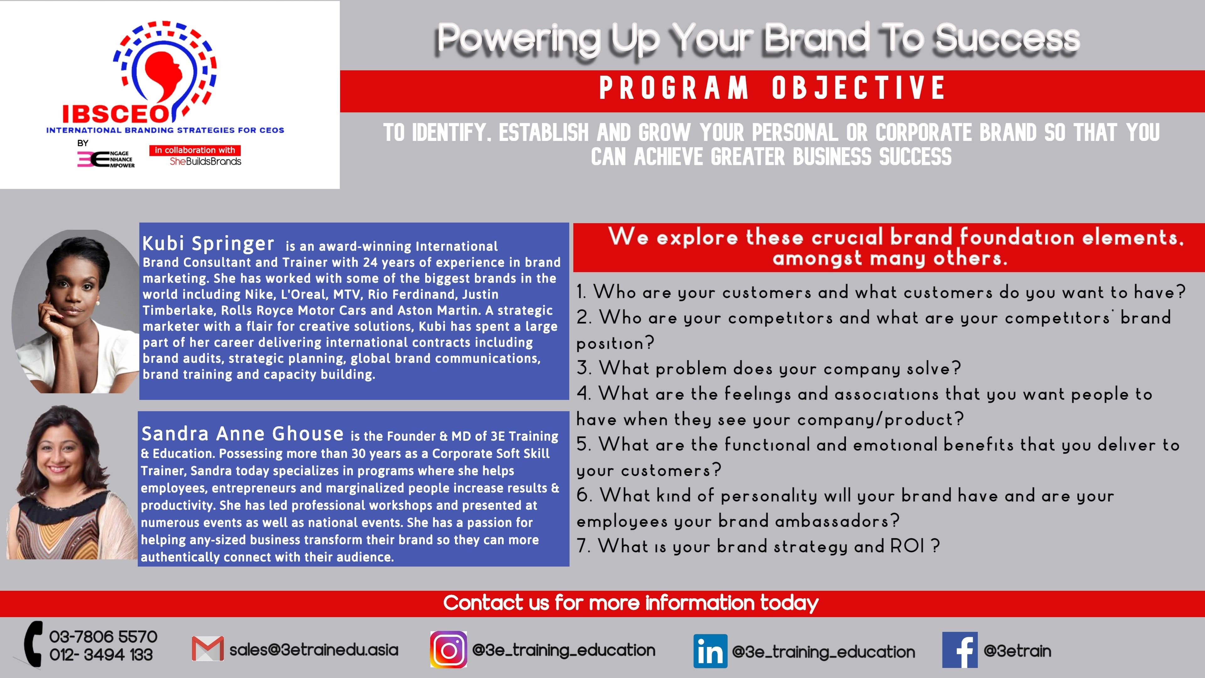 IBSCEO stands for International Branding Strategy for CEOs. It is a program that will identify, establish and grow your personal or corporate brand so that you can achieve greater business success.